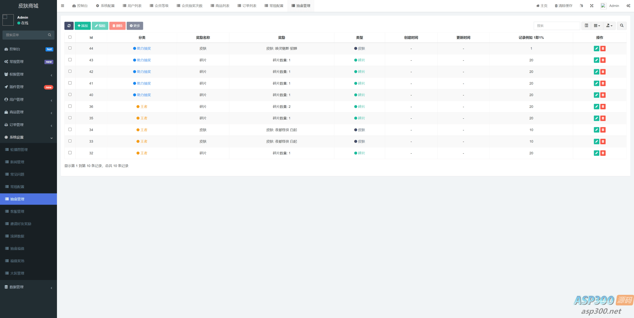 源码编号: 64613二开运营版王者荣耀皮肤抽奖系统.rar