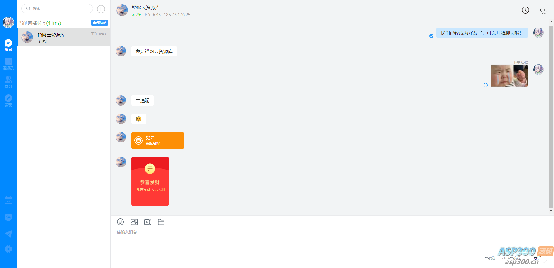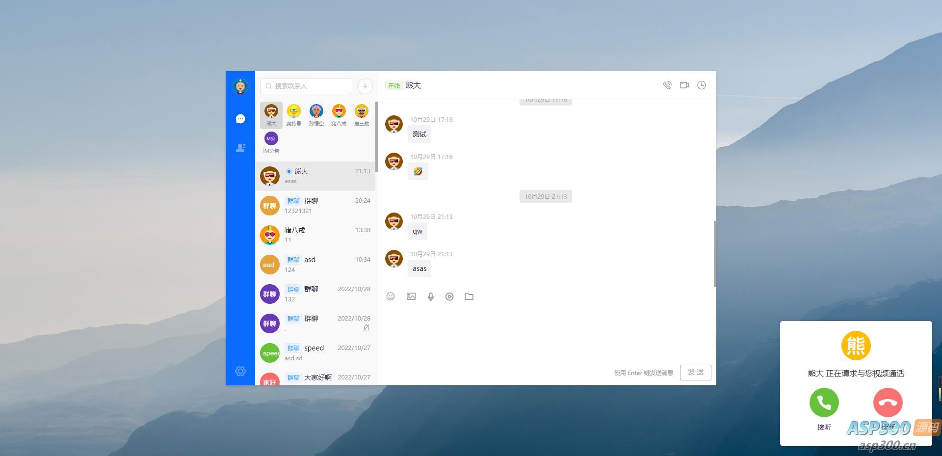 带有前后端的H5即时通讯聊天系统源码。该源码是一个开源的即时通信demo,需要前后端配合使用。它的主要目的是为了促进学习和交流,并为大家提供开发即时通讯功能的思路。尽管该源码提供了许多功能,但仍需要进行自行开发。该项目最初的开发初衷是为了快速搭建企业内部通讯系统、内网交流和社区交流平台。