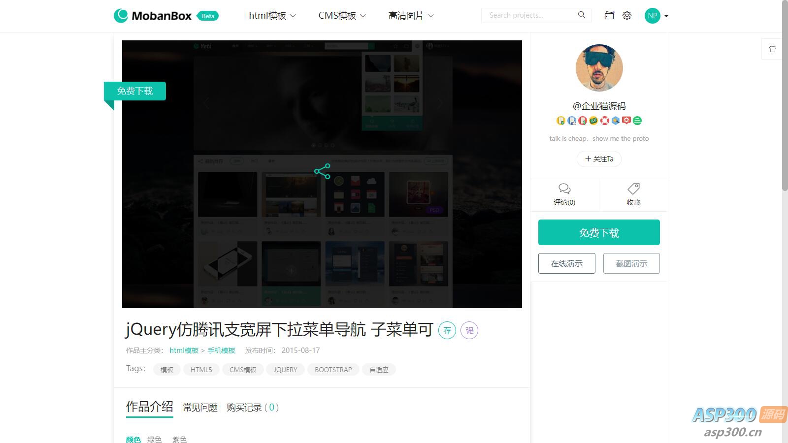 页面设计精美,不亚于大型网站的美工水准,并且用户体验也非常人性化。主要用户分为两类:下载用户和作者。