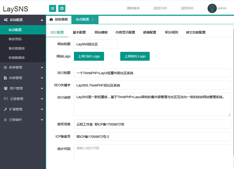 内核驱动是国内最火爆的ThinkPHP,UI驱动是全网最优美LayUI。最重要的是我们是全网第一家提供一键控制内容和社区模块开启关闭解决方案;