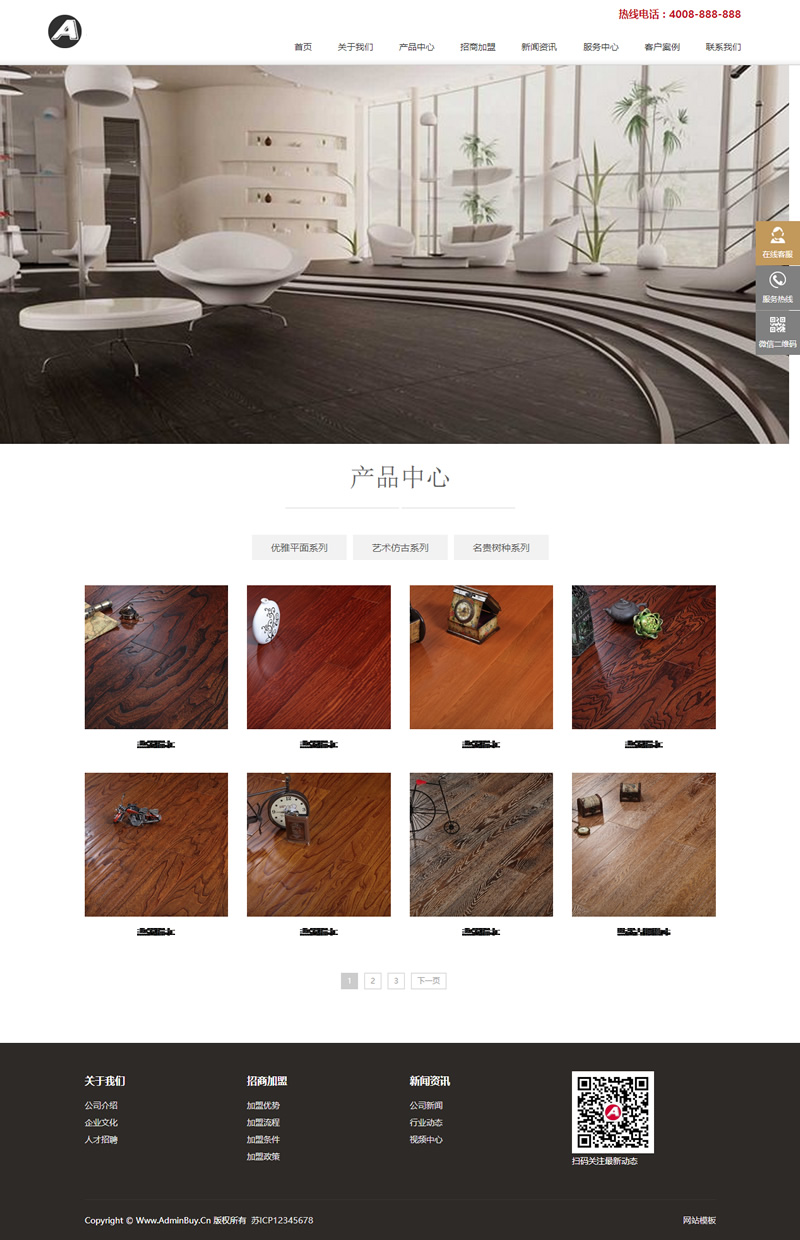 (自适应手机版)响应式木地板木业织梦模板 html5家装地板实木网站源码下载该模板是非常容易存活的,这样的网站很容易吸引访客点击,提升ip流量和pv是非常有利的,随便挂点联盟广告都能养活网站。本套织梦模板采用现在非常流行的全屏自适应布局设计,且栏目列表以简洁,非常时尚大气。页面根据分辨率大小而自动排版,很大程度上改善了页面宽度兼容问题,适应大部分显示器分辨率尺寸哦。模板整体以多种颜色为主色调,适合做各种类型的网站。同一个后台管理三网合一简单方便,体验极佳