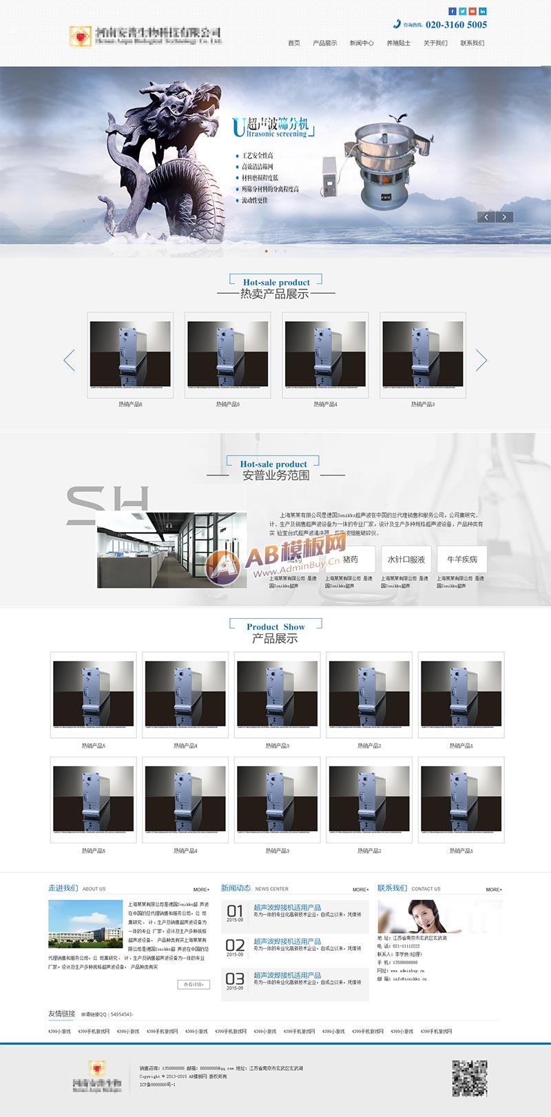 简洁大气的生物科技公司网站,超声波设备销售服务公司网站模板html下载。主要有:产品内页、产品中心、关于我们、新闻中心、新闻中心内页、业务范围等总共7个页面。