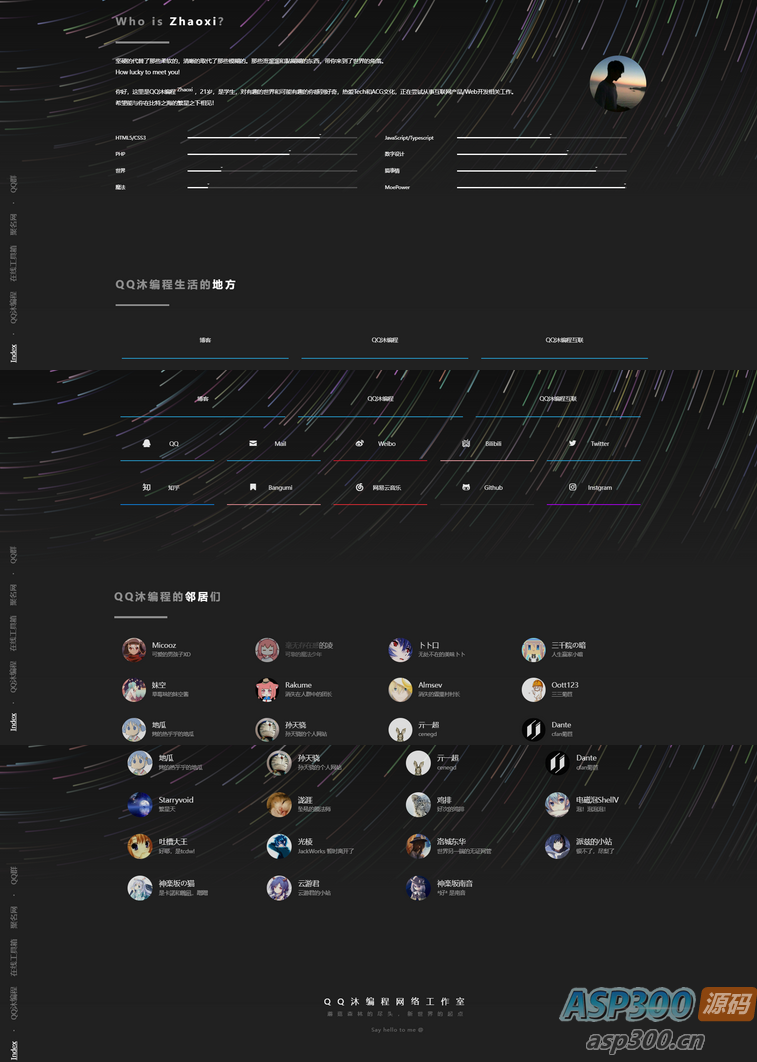 这是一款美观流光作风个人主页HTML源码,觉得挺喜欢的,需求的自行下载! 声明:本站所有文章,如无特殊说明或标注,均为本站原创发布。任何个人或组织,在未征得本站同意时,禁止复制、盗用、采集、发布本站内容到任何网站、书籍等各类媒体平台。如若本站内容侵犯了原著者的合法权益,可联系我们进行处理。
