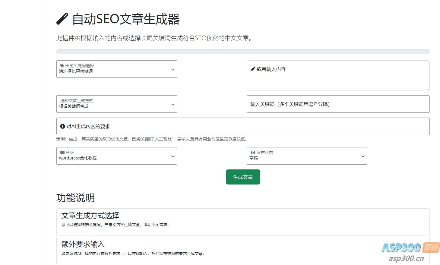 插件核心功能介绍自动化文章生成