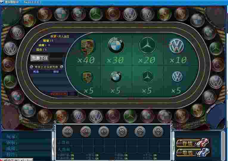 决定是要做庄还是选择压注;当有一名玩家选择成为庄家以后,其他玩家将可以根据自己的判断进行下注。整个游戏共有8个下注区域分别为:大保时捷 小保时捷 大宝马 小宝马 大奔驰 小奔驰 大大众 小大众分别代表了5种不同的赔率;游戏开始后跑车开始漂移,几圈以后跑车会停下,跑车所停位置就代表此次游戏开奖结果。