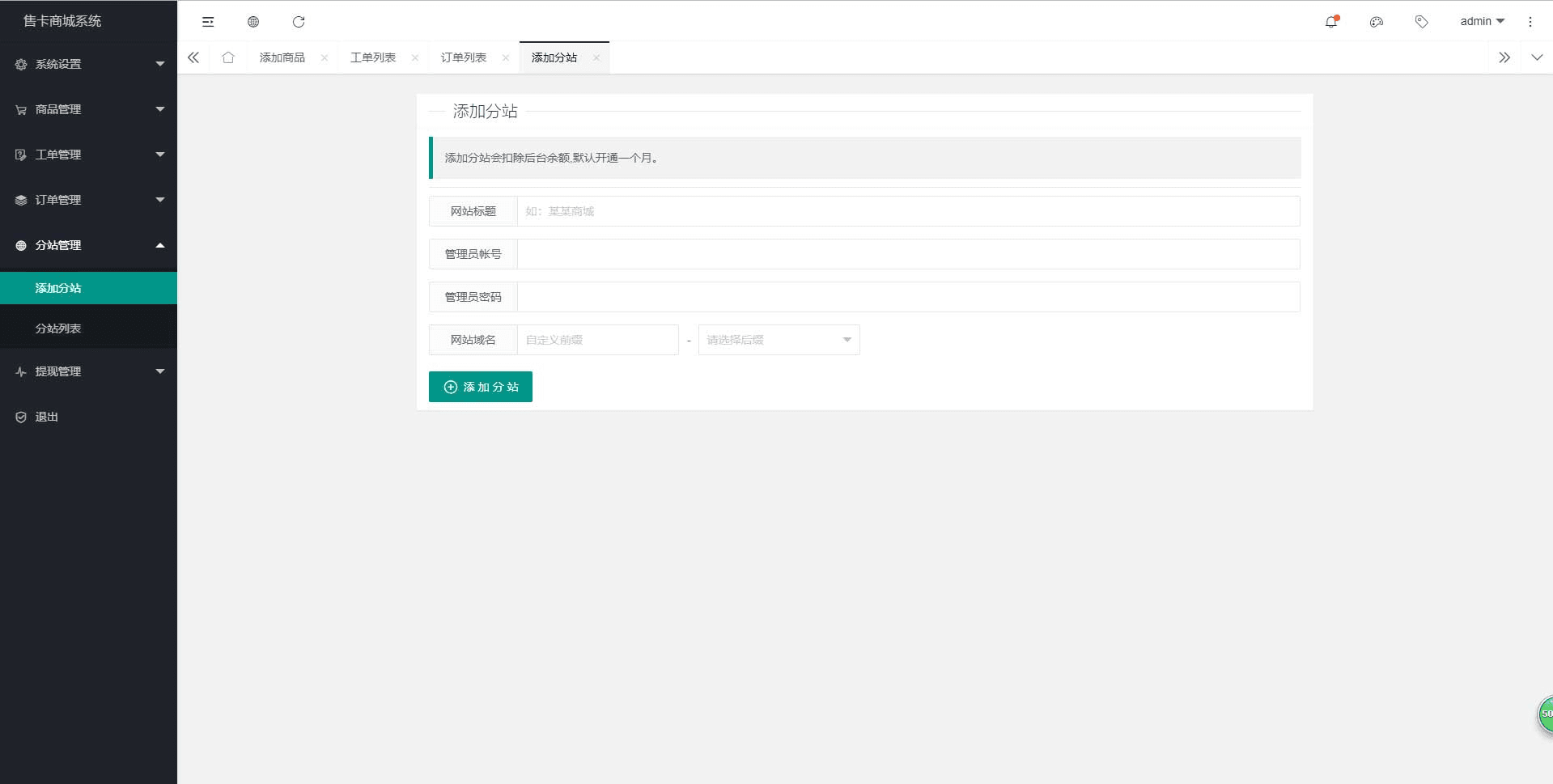 5:可招分站长,添加分站,开启躺赚模式