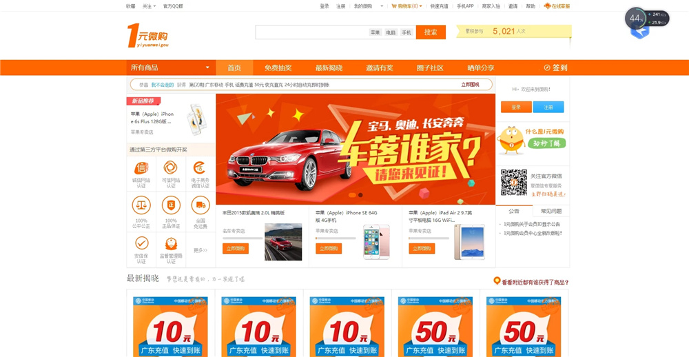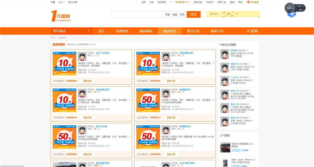 1元夺宝云购完整源码 带机器人+带控制 声明:本站所有文章,如无特殊说明或标注,均为本站原创发布。任何个人或组织,在未征得本站同意时,禁止复制、盗用、采集、发布本站内容到任何网站、书籍等各类媒体平台。如若本站内容侵犯了原著者的合法权益,可联系我们进行处理。
