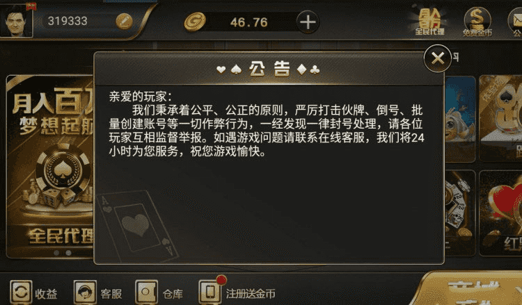 本套游戏是网狐二开的,控制稳定,代理稳定,游戏稳定,经过实际运营,市场反响和实际运营效果很不错。游戏界面精美细腻,子游戏均为市场热门游戏,增加高热度海外子游戏轮盘等,更是为这款棋牌产品添加了一些高端的逼格和可玩性,可以有效提高玩家兴趣度和粘度,全民代理的三级分销模式,可以大大的减少你运营的推广成本,也可以让快速吸取一大批玩家,前端可直接佣金提现,让玩家推广的兴趣度更高。