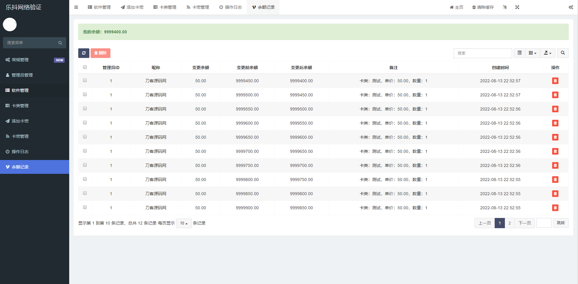 支持日志记录系统,卡密操作,金额变动等全部记录
