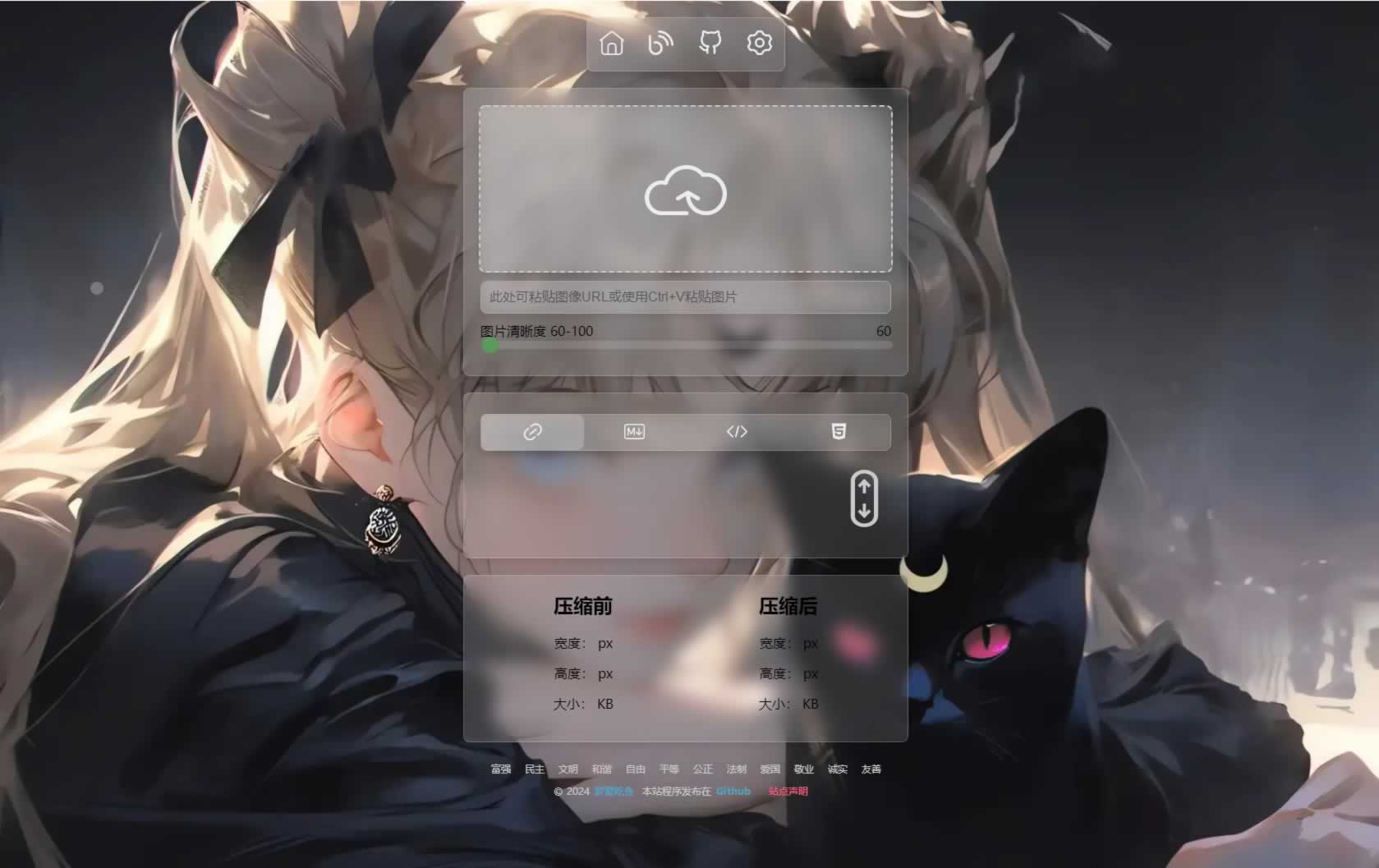 支持自定义压缩率,默认60,可自定义修改。支持修改每日上传限制,单次上传限制