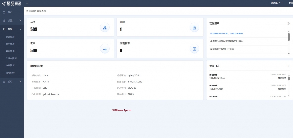 极品模板在线客服系统是一款基于:Php + MySql + Swoole4 + Vue3开发的独立部署的双语在线客服系统。