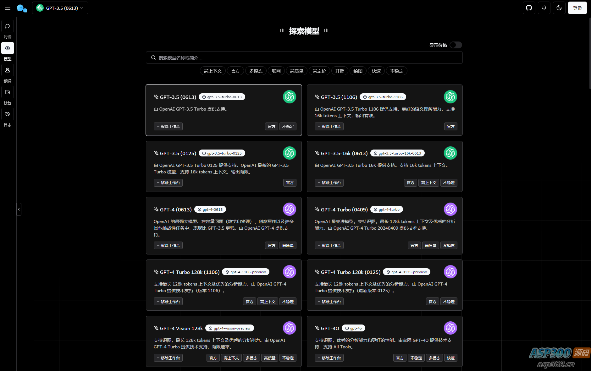 模型市场功能, 支持模型搜索, 支持顺序拖拽, 包含模型名称, 模型描述, 模型 Tags, 模型头像, 自动绑定模型的价格设置, 自动绑定订阅配额 (包含在订阅的模型将标有 plus 标签)