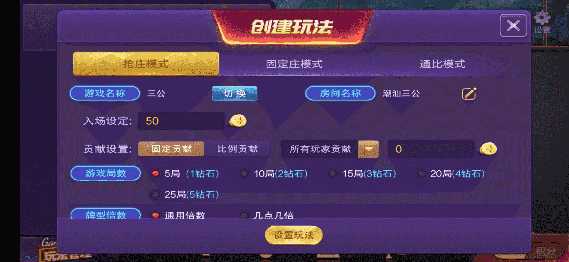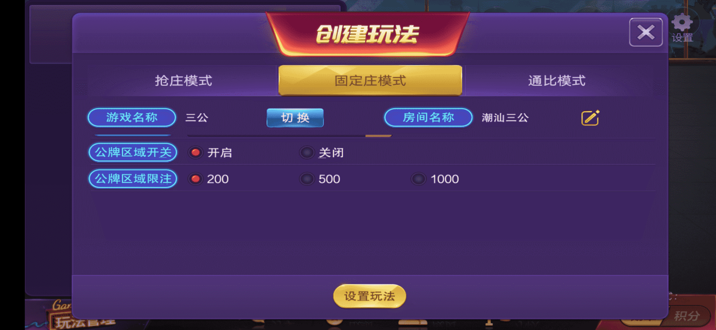 广东潮汕那边的玩法,只有一个潮汕三公游戏,带联盟俱乐部模式