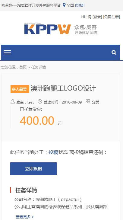 客客kppw3.3威客网众包发布任务接单平台网站源码,一站式软件开发外包服务平台开源响应式源码