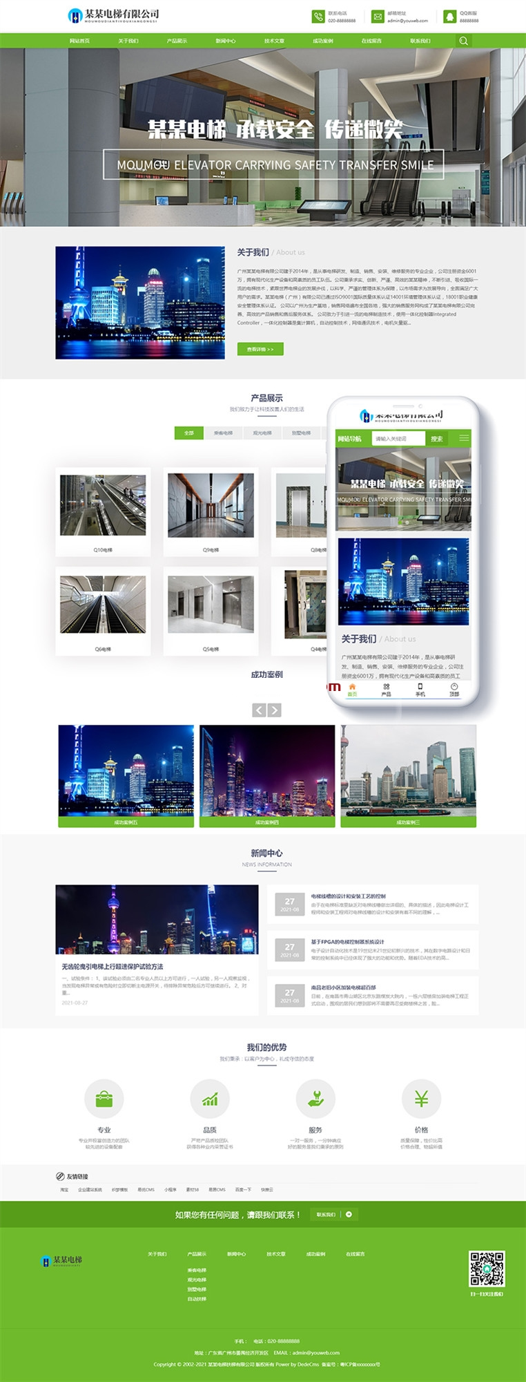 织梦最新内核开发的模板,该模板属于企业通用、电梯、扶梯类企业都可使用,这款模板使用范围极广,不仅仅局限于一类型的企业,你只需要把图片和产品内容;换成你的,颜色都可以修改,改完让你耳目一新的感觉!响应式自适应设计,同一个后台,数据即时同步,简单适用!原创设计、手工书写DIV+CSS,完美兼容IE7+、Firefox、Chrome、360浏览器等;主流浏览器;页面简洁简单,容易管理,DEDE内核都可以使用;附带测试数据!