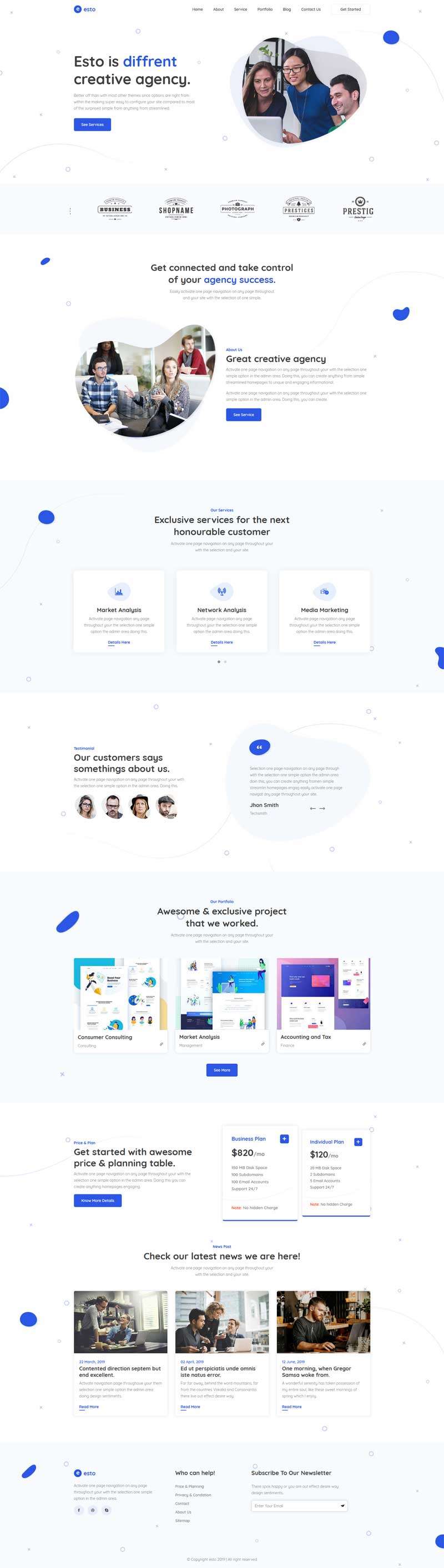 一款可定制创意中小企业网站Bootstrap框架设计模板。模板有很多页面的布局,博客,服务,着陆页等,响应式布局兼容手机移动端设备。