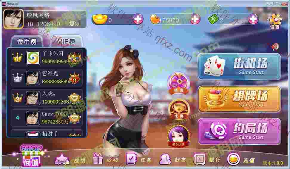 内含游戏:广东麻将,四川麻将,红中麻将,抚州麻将,卡五星,中字麻将,转转麻将,跑得快,牛牛,斗地主,炸金花,德州扑克,百家乐,二八杠,捕鱼