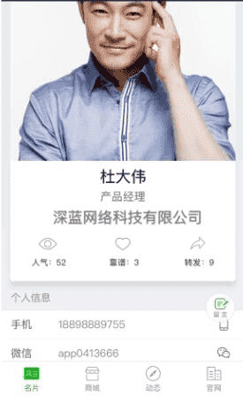 详细介绍: 深蓝AI智能名片小程序V2.7.0原版 声明:本站所有文章,如无特殊说明或标注,均为本站原创发布。任何个人或组织,在未征得本站同意时,禁止复制、盗用、采集、发布本站内容到任何网站、书籍等各类媒体平台。如若本站内容侵犯了原著者的合法权益,可联系我们进行处理。