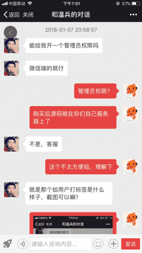 模块更新信息: 一些小修改 客服快捷消息增加排序功能 优化客服工作界面快捷消息关于图片和图文的展示 声明:本站所有文章,如无特殊说明或标注,均为本站原创发布。任何个人或组织,在未征得本站同意时,禁止复制、盗用、采集、发布本站内容到任何网站、书籍等各类媒体平台。如若本站内容侵犯了原著者的合法权益,可联系我们进行处理。