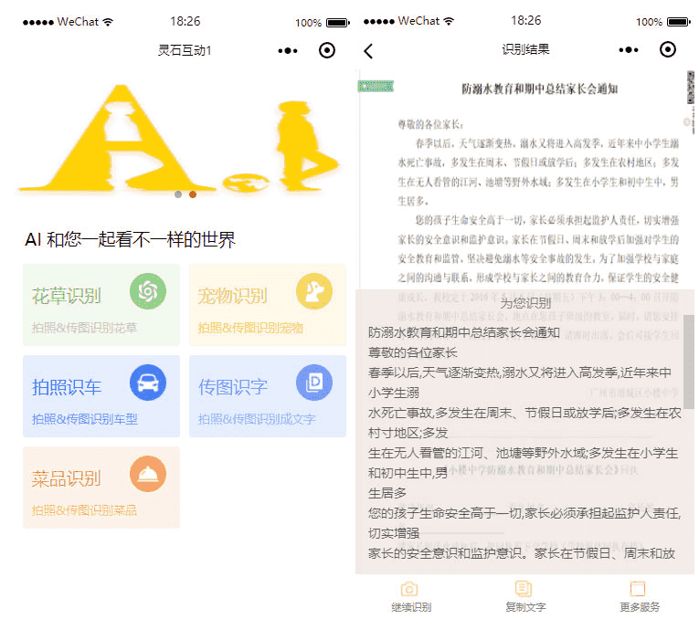灵石AI识别大全小程序,是灵石互动在推出拍照识别花草小程序爱识花之后的又一重要力作,爱识花已经被所有用户认可及广泛使用(小程序搜索”识花”即可看到大量案例)